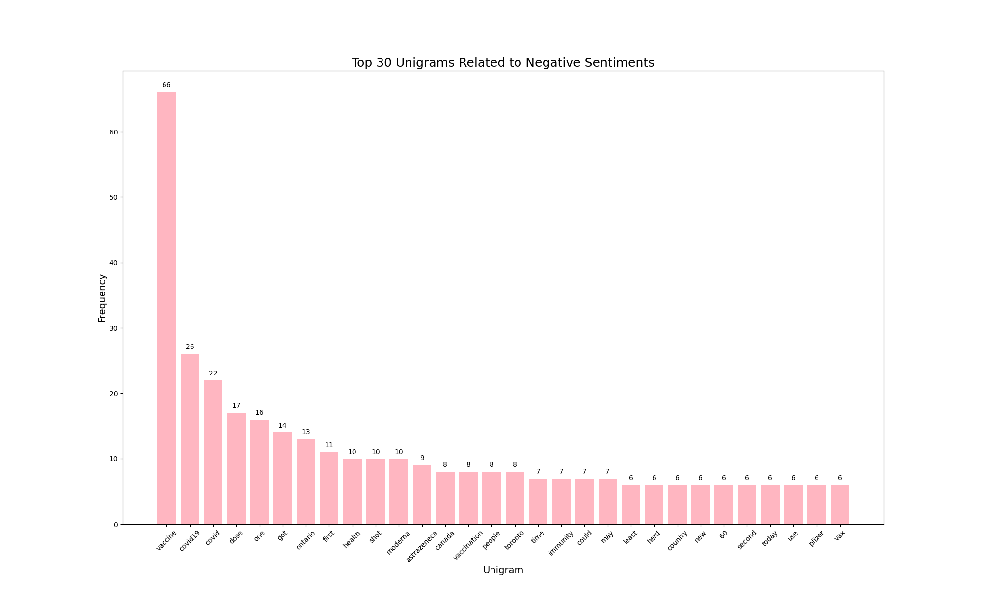 I visualized n-grams to see words and phrases associated with COVID-19 vaccine-related tweets. Click on each of the following images to enlarge it.